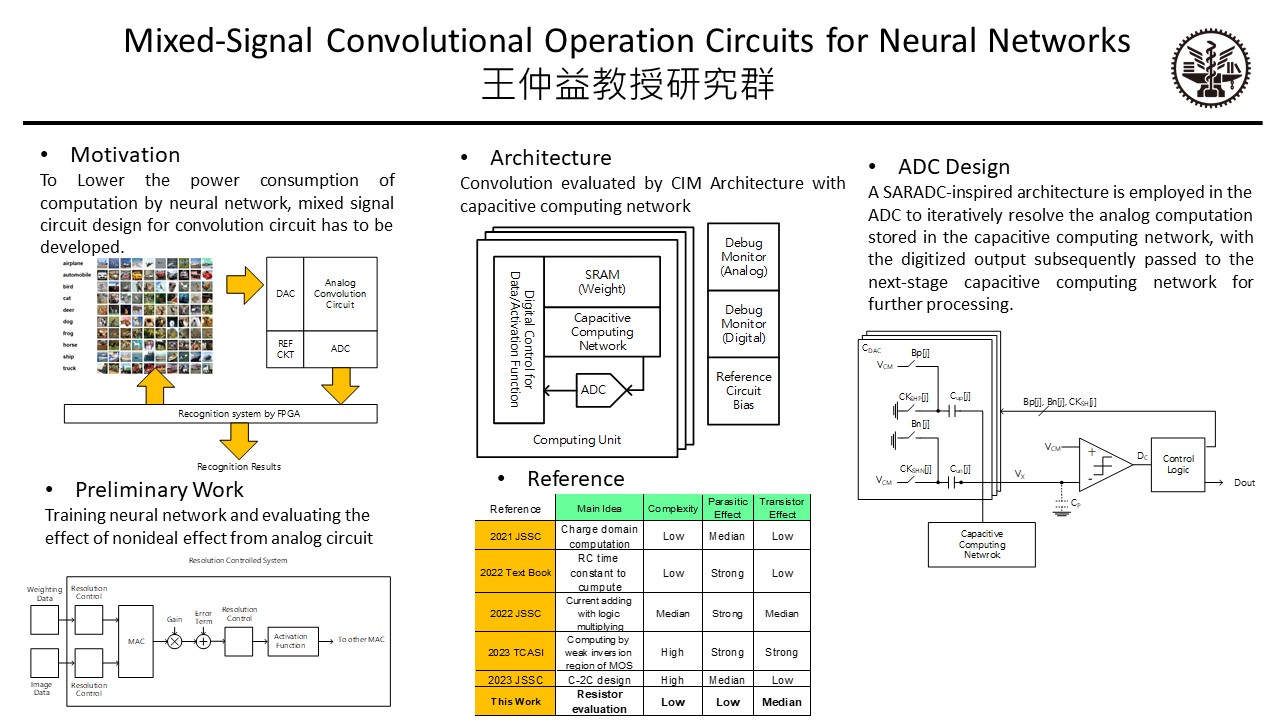 Professor Chung-Yi Wang graduated from the Institute of Electronics at National Yang Ming Chiao Tung University. He has previously worked at major IC design companies, including MediaTek, Egis, and so on. He is currently a faculty member in the Department of Microelectronics Engineering at National Yang Ming Chiao Tung University.